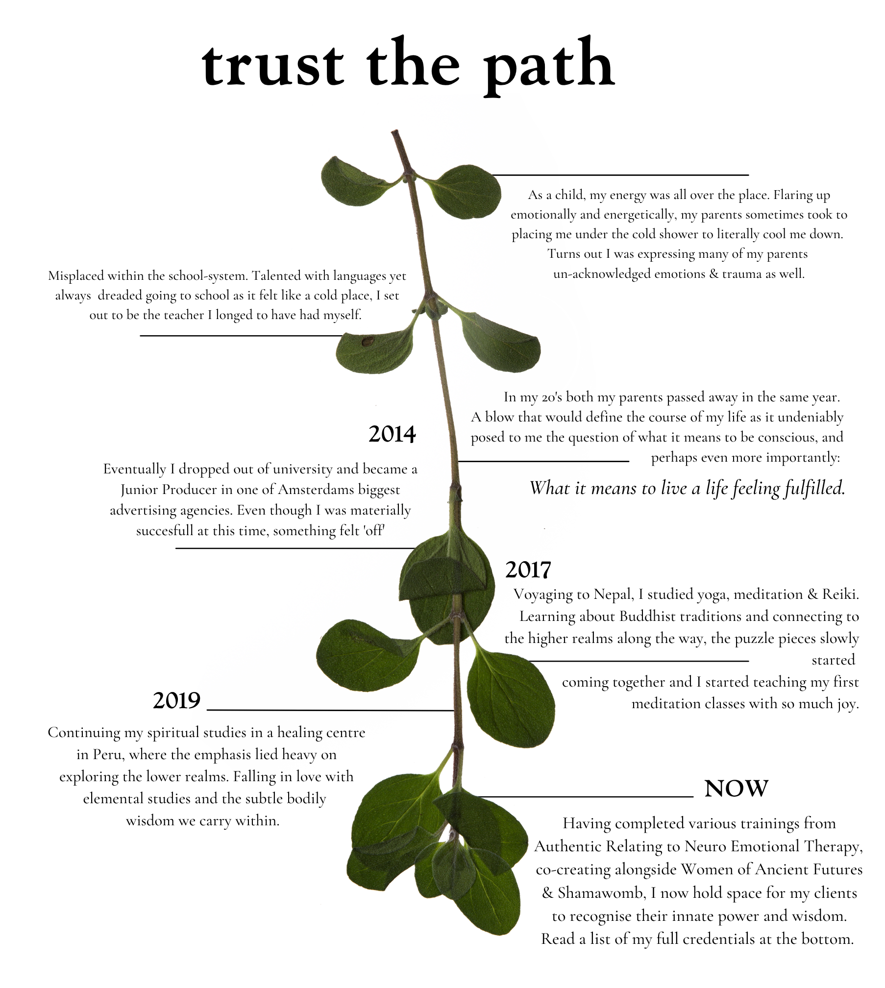 As a certified Holistic Therapist, specialized in Neuro Emotional Integration & meditation, I guide my clients back into a fulfilling relationship with the intelligence of their body and inner world.